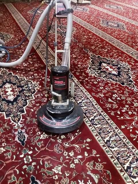 تنظيف الموكيت بالمسجد بالطريقة الجافة وتنظيفه يضمن التعقيم بنفس الوقت.